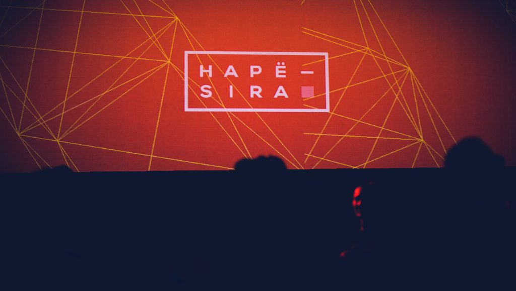 By Sonja Methoxha Countless colorful product pictures are hung on a long white corridor which leads to a large backyard. A black van which serves coffee, cold beverages and fast foods appears.