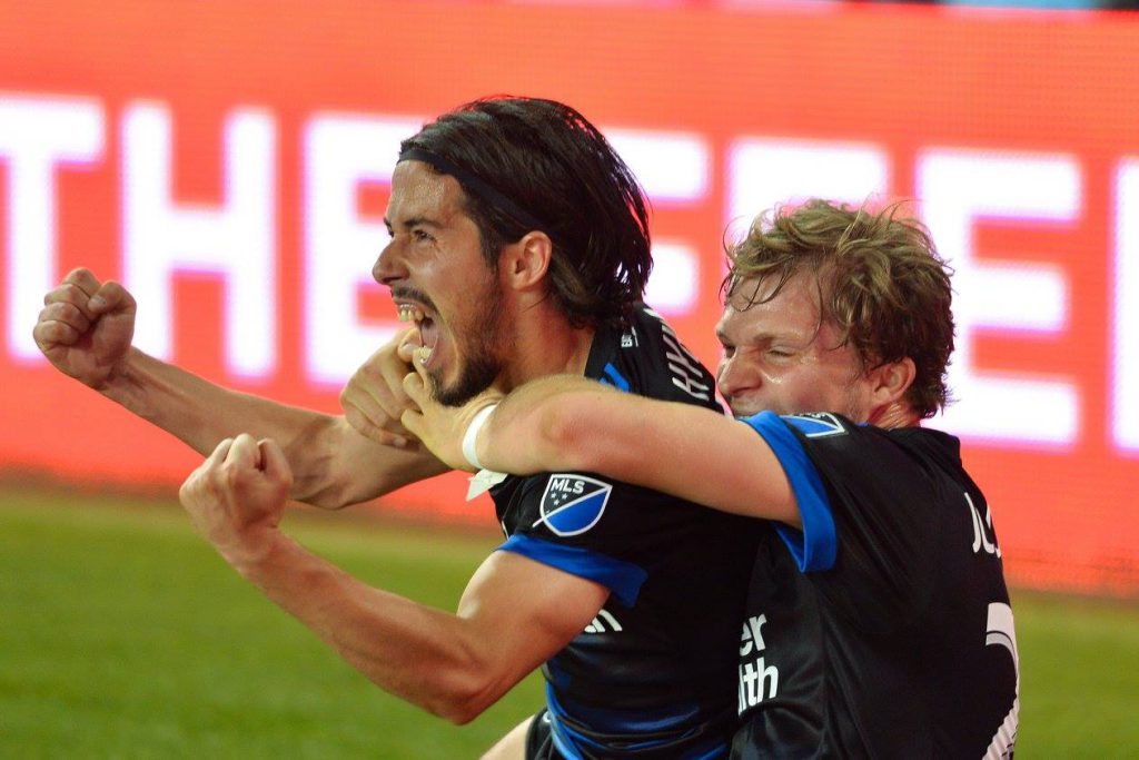 Sokol Cikalleshi celebrates after scoring an injury time winner