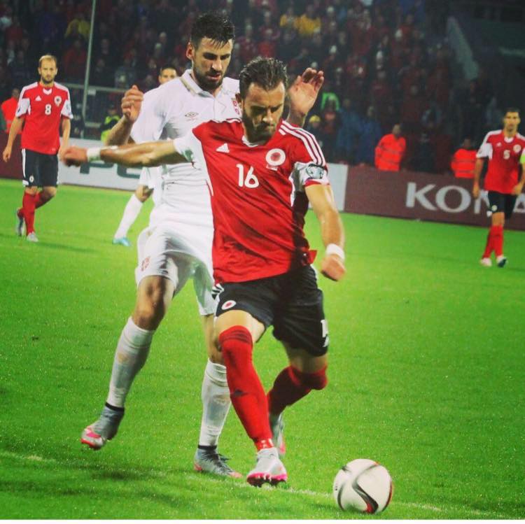 Midfielder Odise Roshi was Albania's protagonist giving the national side the lead, but also inflicting a penalty earning Macedonia an equalizer. Photo: Albanian Football Association