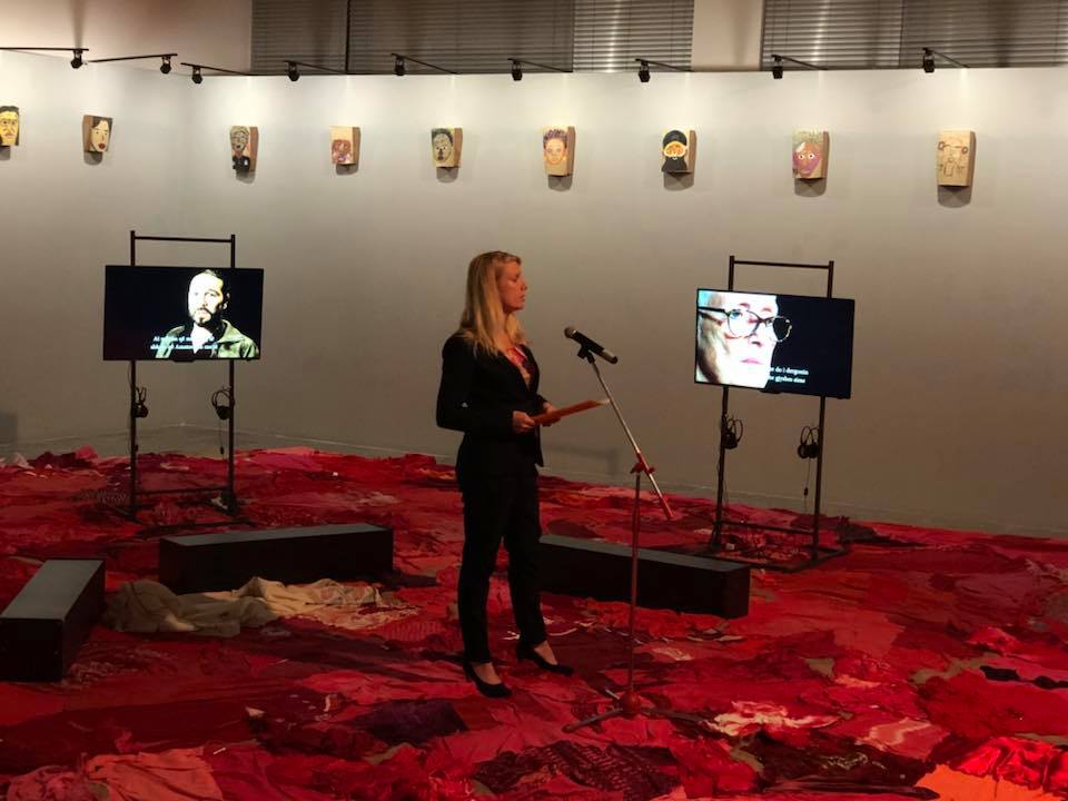 The carpet of clothes is called Mantle of Love and it’s created by Patricia Kaersenhout. The clothes there, blouses, bras, underwear, dresses, are all attire worn by the enslaved women in Netherlands who managed to escape. They are in the shades of red, which associated worldwide with prostitution and the Red Light district. It symbolizes the oppression of women and the way their rights are constantly trodden underfoot. One could also understand it in the context of sweeping everything we don’t say or don’t want to see under the carpet. There are many layers of meaning and space for interpretation there. Seeing the bras and pieces of attire thrown around the floor gives an implied fearful feeling of women taken and thrown around in the street, like objects to be worn and used.
