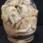 The cultural-economic development of Durres is also evident by the enriched funerary objects, in which by the of 4th century BC we find the presence of lekythos with reliefs and decorations. The scenes refer to duels, abductions of nymphs or Amazons. On the figures it is used a white paste depicting rosette-shaped flowers over their shoulders. By the end of the century a black color with mild luster on a rosey background with line intersections is used, with white-colored painted drops and elements. The general tendency of the masters seemed to be the crossing from a rich-on-elements scenography, to a more modest one with silhouette technique. This allows us to classify the subjects in two developmental categories.